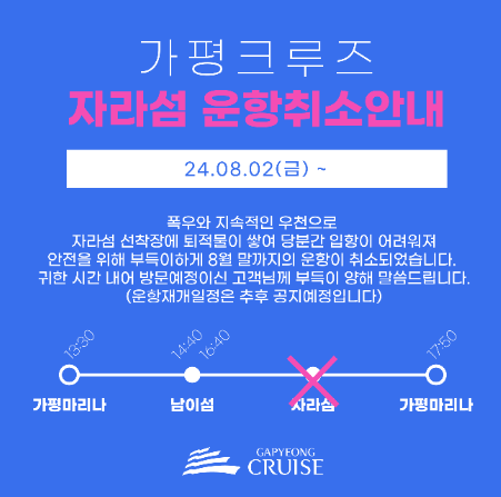 날씨에 따라 운항 스케줄이 바꿀 수 있으니, 홈페이지에서 확인 바랍니다.